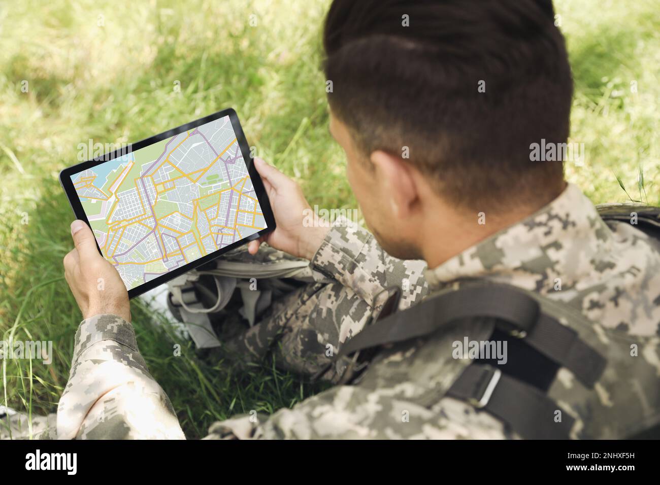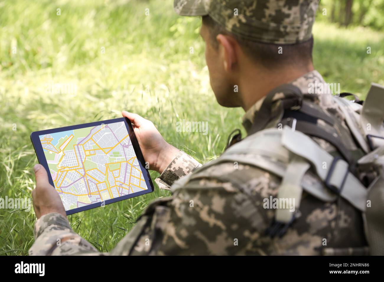 Soldier using tablet computer Stock Photo - Alamy