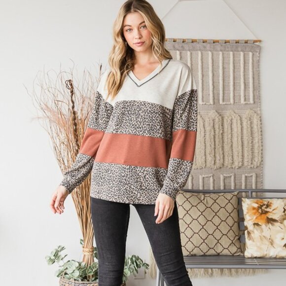HEIMISH USA | Tops | Solid Color Block And Animal Top With Stitch ...