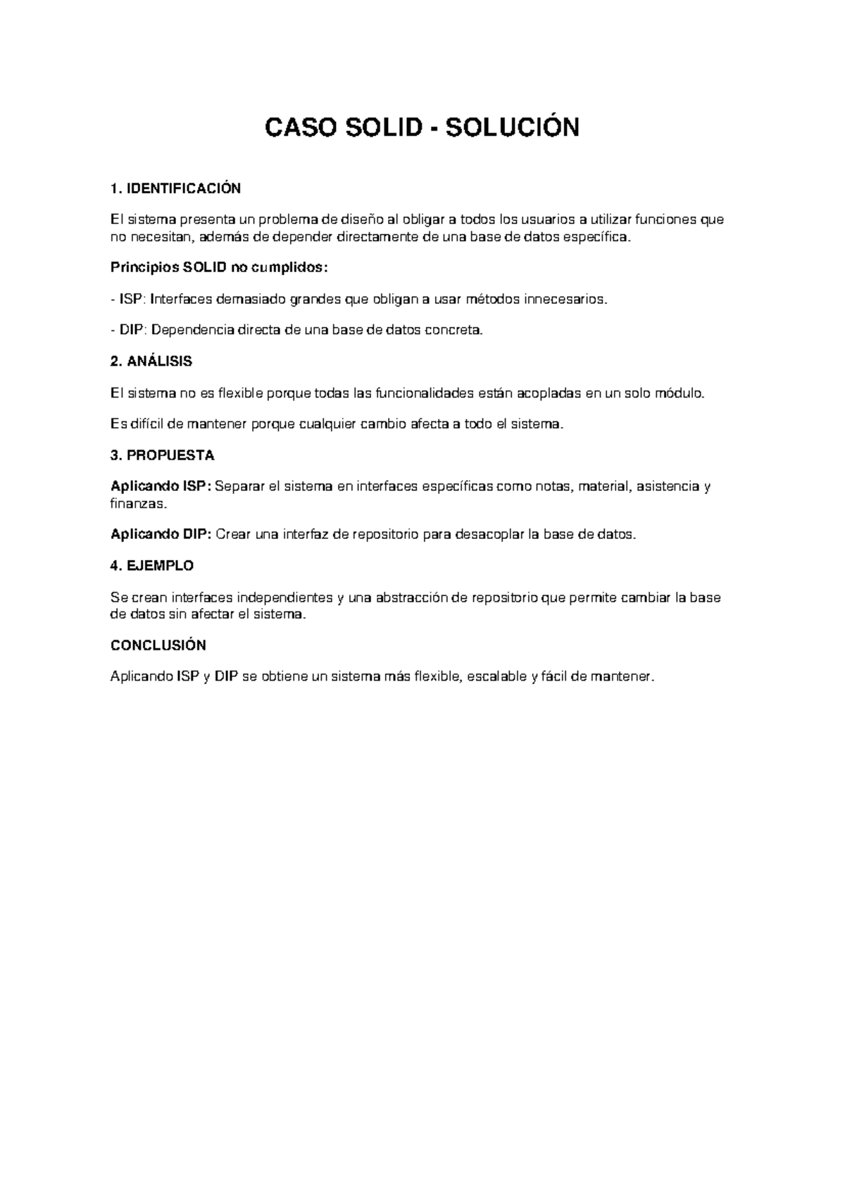 Solución Caso SOLID: Mejora de Diseño y Flexibilidad - Studocu