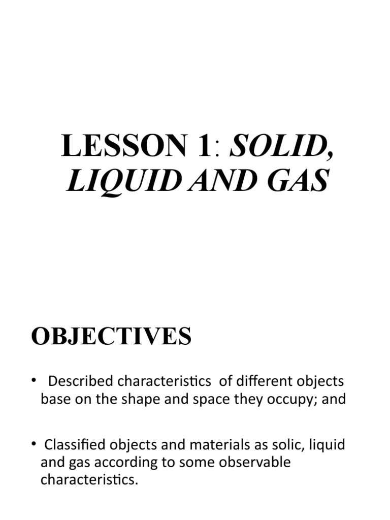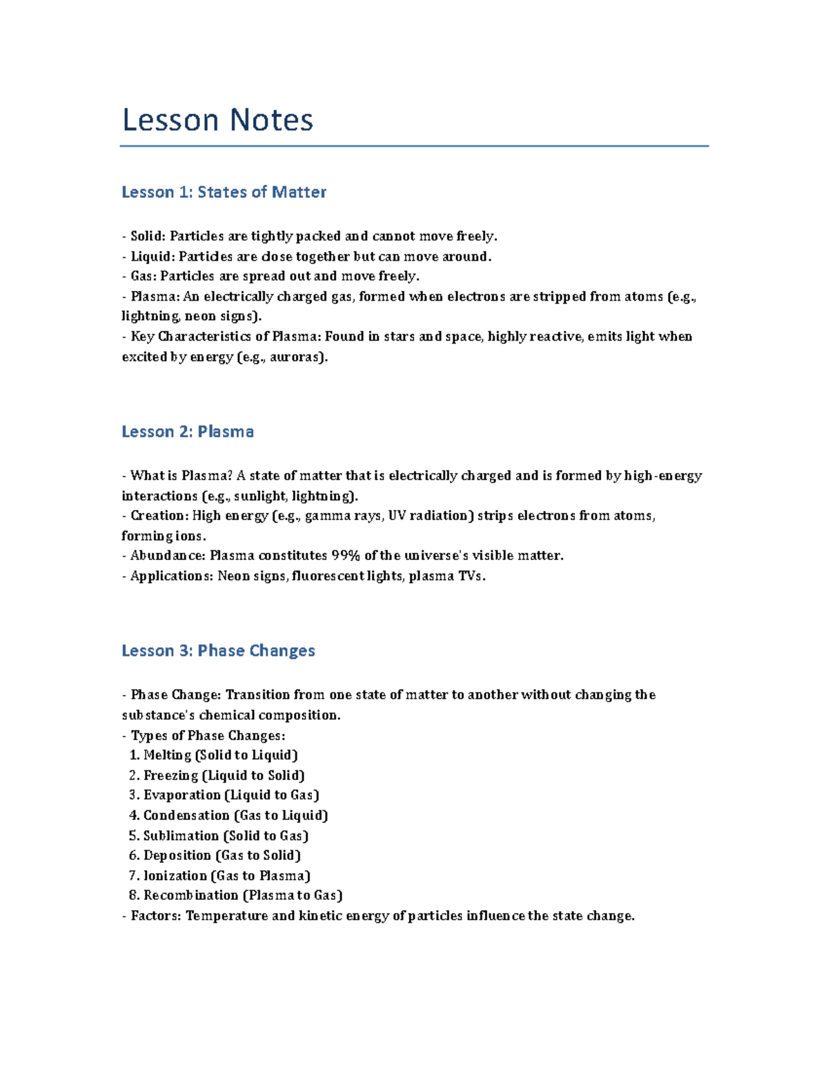Lesson Notes - Lesson Notes Lesson 1: States of Matter - Solid ...