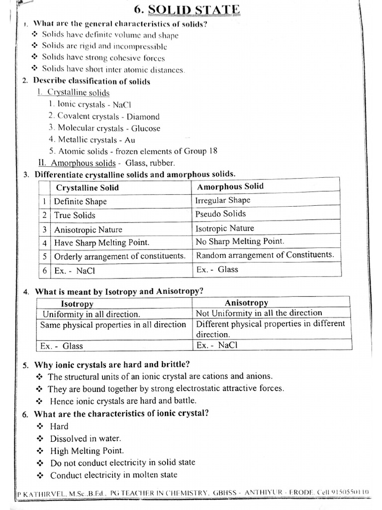 Lesson - 6 :The Solid State Part 1 (Properties of Solids Crystal ...