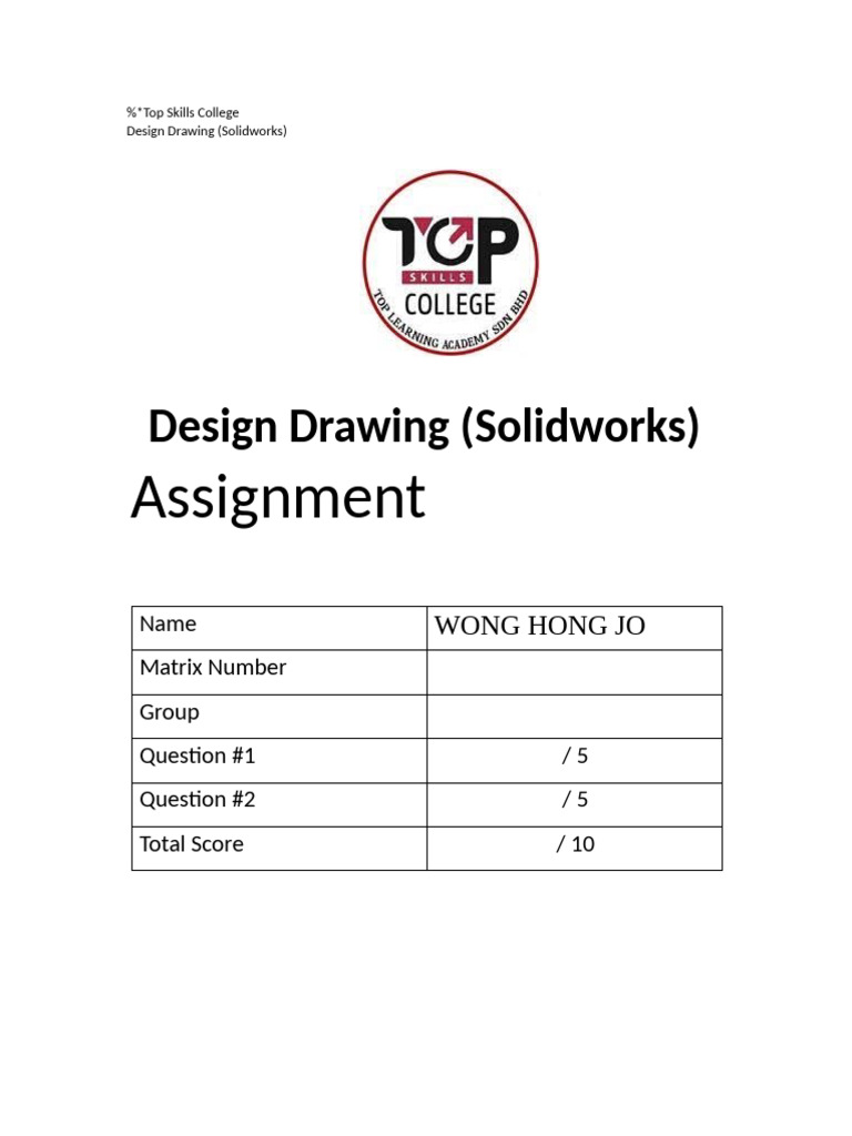 SolidWorks Assignment Solution Are you struggling with your SolidWorks ...