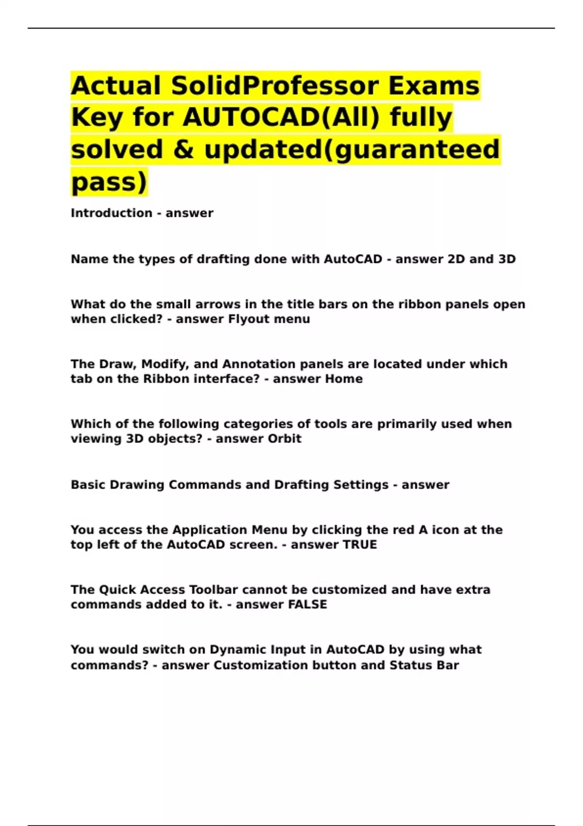 Actual SolidProfessor Exams Key for AUTOCAD(All) fully solved & updated ...