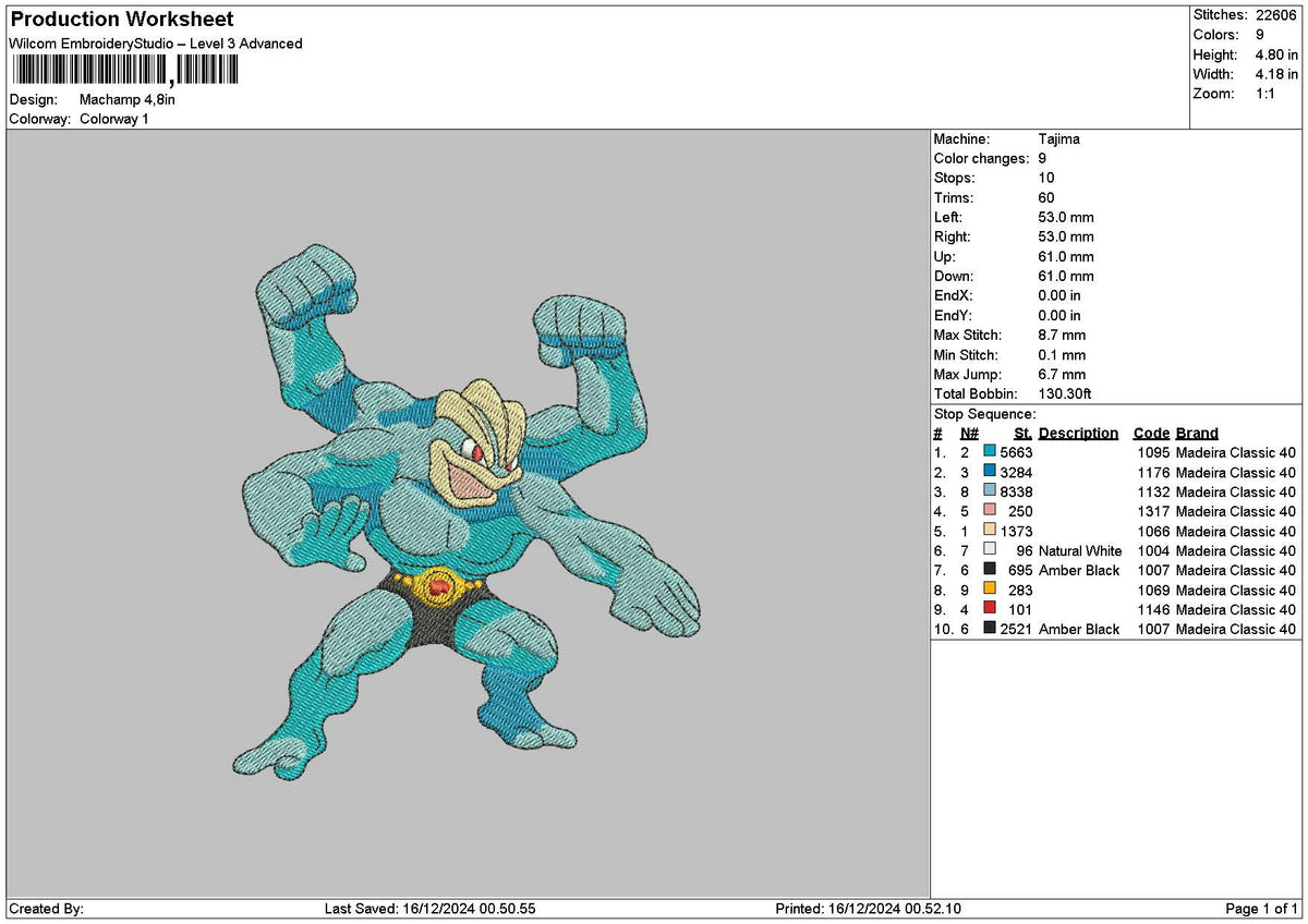 Machamp Embroidery File 6 sizes – embrostudio