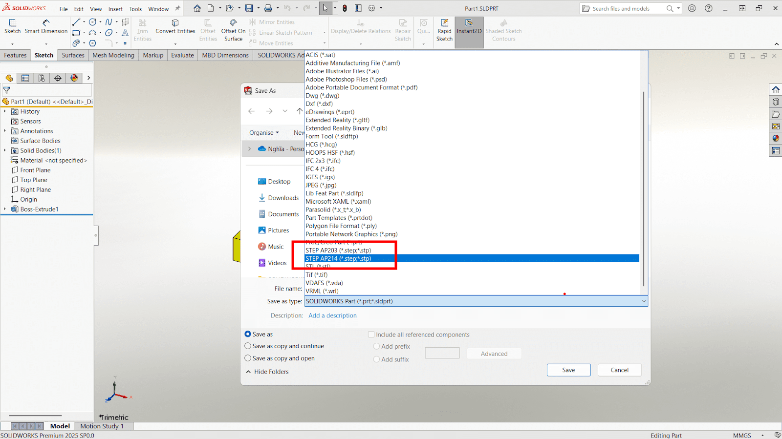 Xuất file SOLIDWORKS 2025 để sử dụng cho các phiên bản thấp hơn
