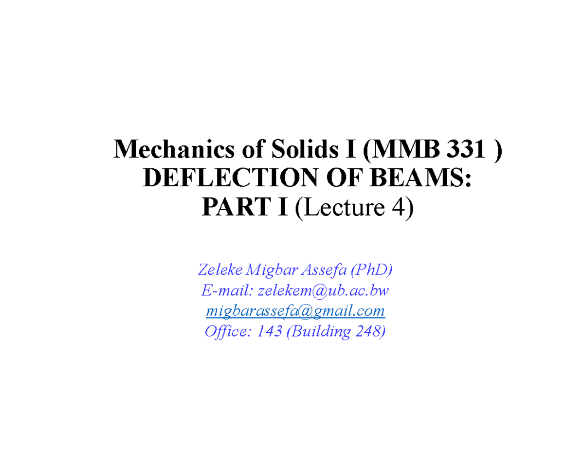 Lecture 4 Deflection and slope equation part 1 - Mechanics of Solids I ...