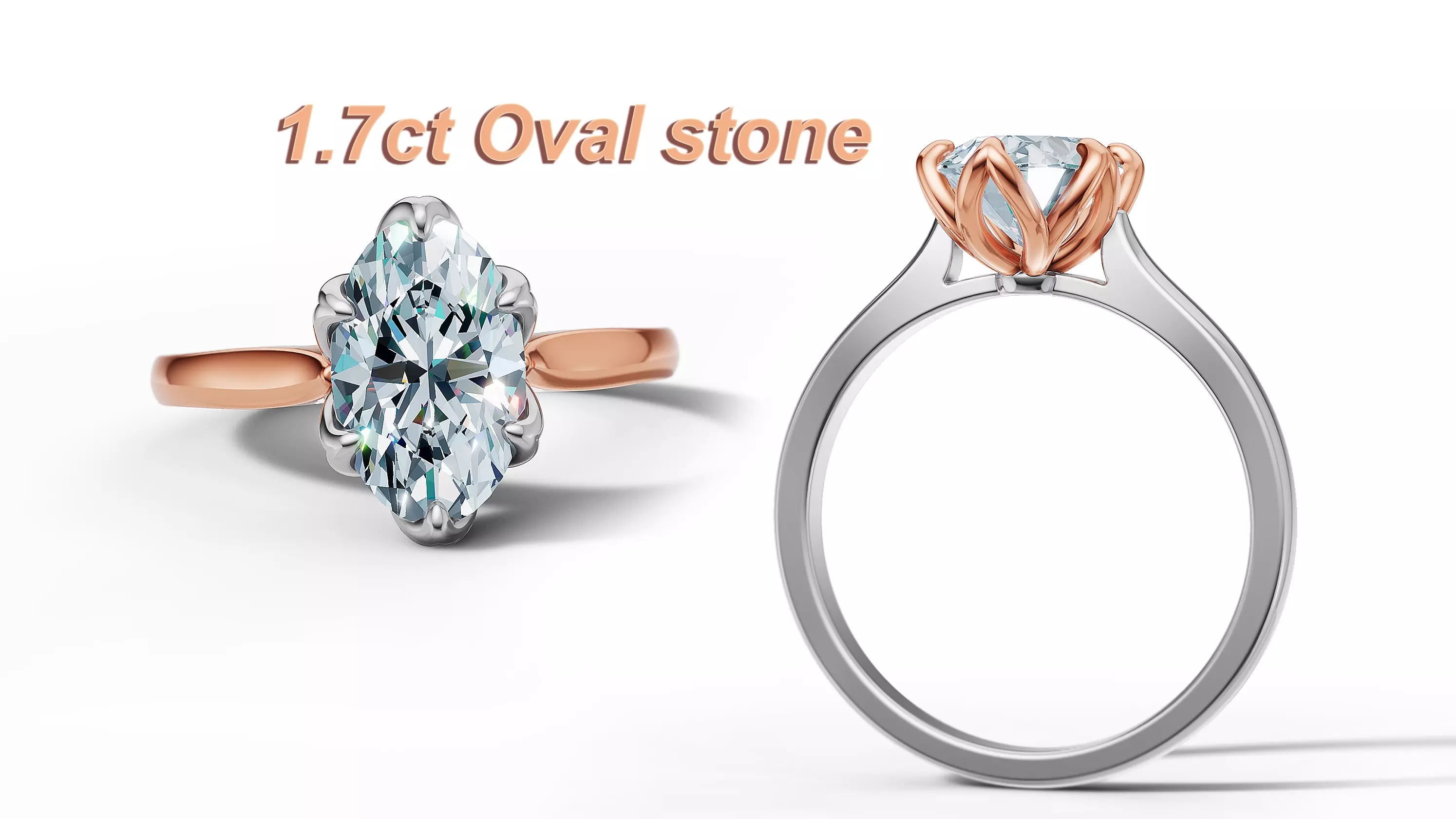 Solitaire Engagement Ring Tulip Head 10x6 Oval Stone Two Tone 3D model ...