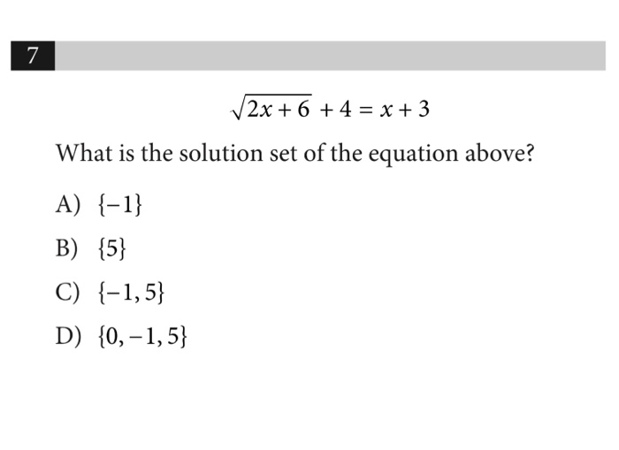 Solved 7 What is the solution set of the equation above? A) | Chegg.com