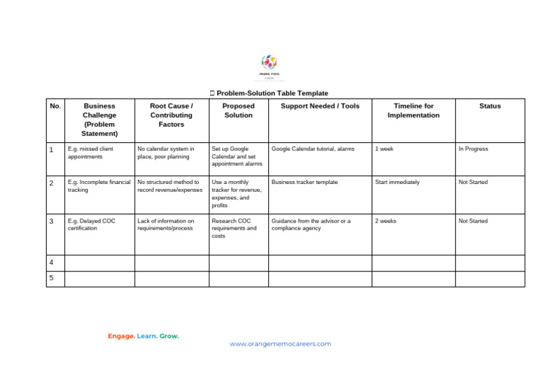 ? Problem-Solution Table Template | PDF