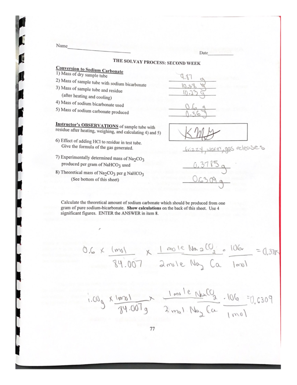 THE Solvay Process Second WEEK - CHEM 125 - Studocu