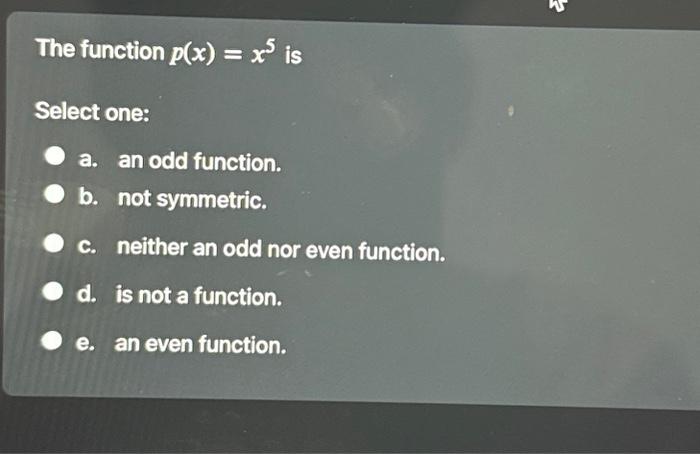 Solved function p(x)=x5 is 3ct one: a. an odd function. b. | Chegg.com