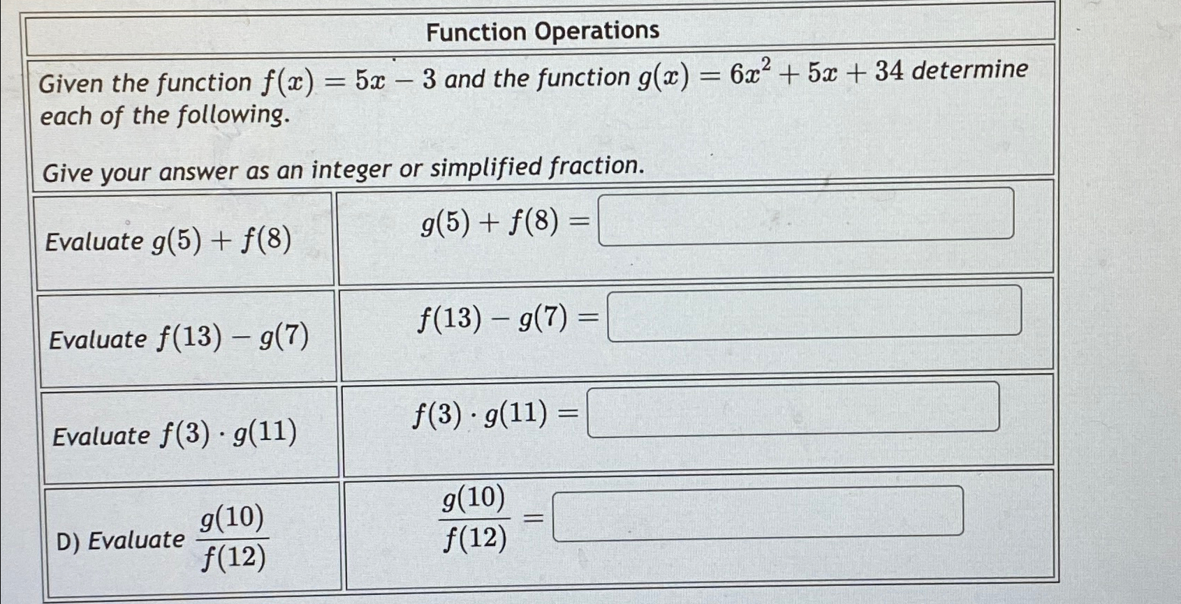 Solved Function OperationsGiven the function f(x)=5x-3 and | Chegg.com