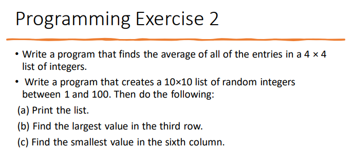 Solved 2 Programming Exercises - ( Language Complete the | Chegg.com