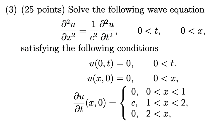 Solved (3) (25 points) Solve the following wave equation | Chegg.com