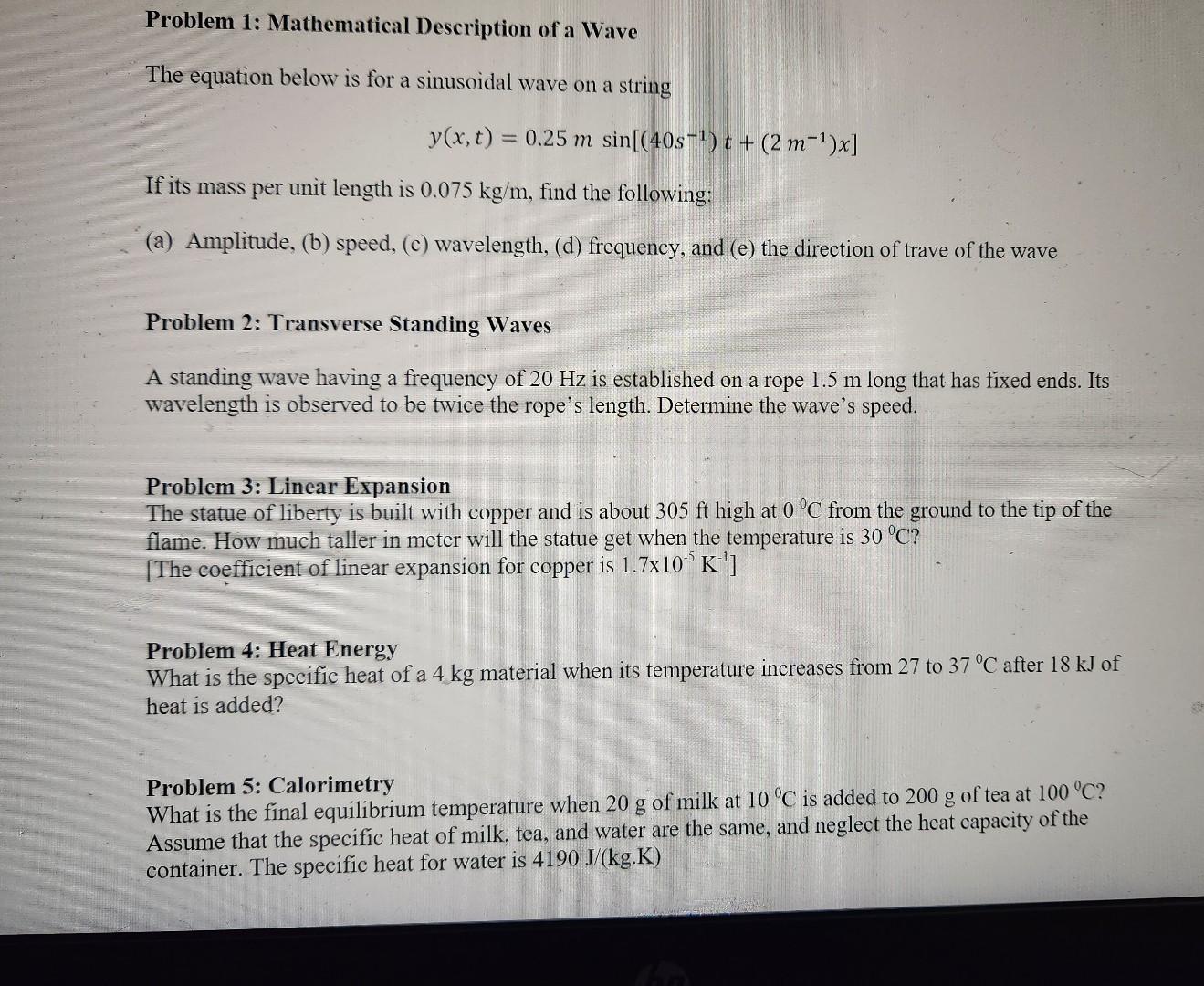 Solved Wave Function ProblemsQ1: A wave is modeled with | Chegg.com
