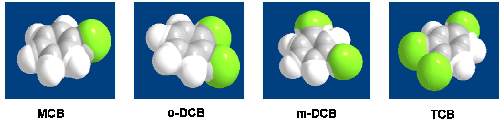 3 3-d surface structures of the solvents. colour coding of