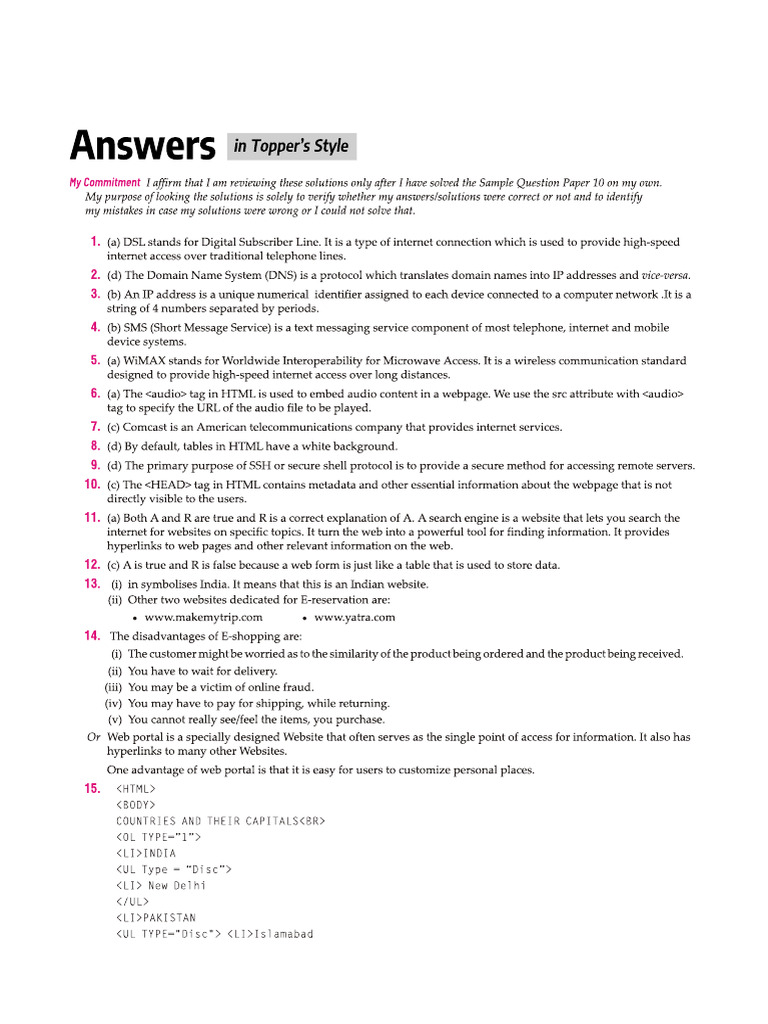 Class X Computer Applications Practice Question Papers with Answer Key ...