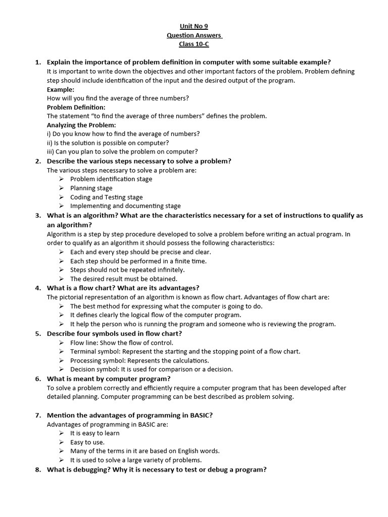 10th computer unit 2 exercise solved , all solved questions unit 2 ...