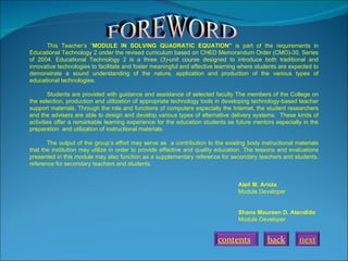 Module in solving quadratic equation | PPT | Secondary Education ...