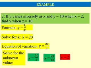 PPT - Direct and Inverse Variation: Problem-Solving Examples PowerPoint ...