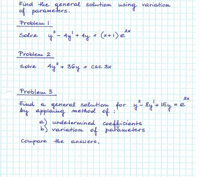 Solved Use the method of variation of parameters to solve | Chegg.com