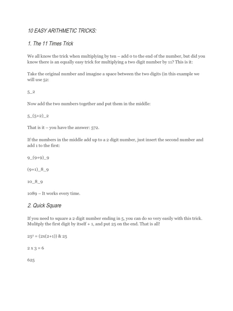 10 Easy Arithmetic Tricks | PDF | Multiplication | Percentage