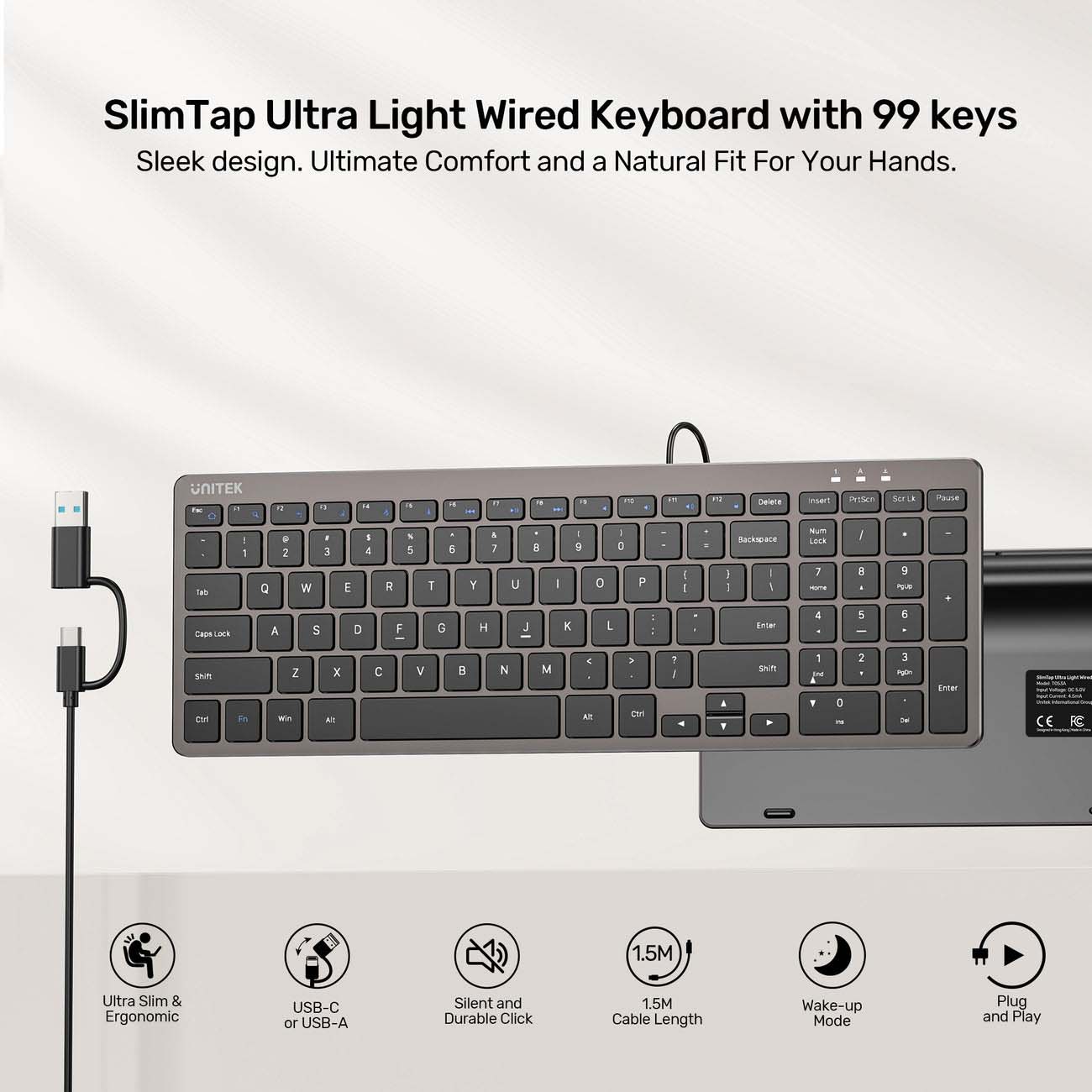 Unitek SlimTap Wired Keyboard / Slim Design / 99 Keys / Supports ...