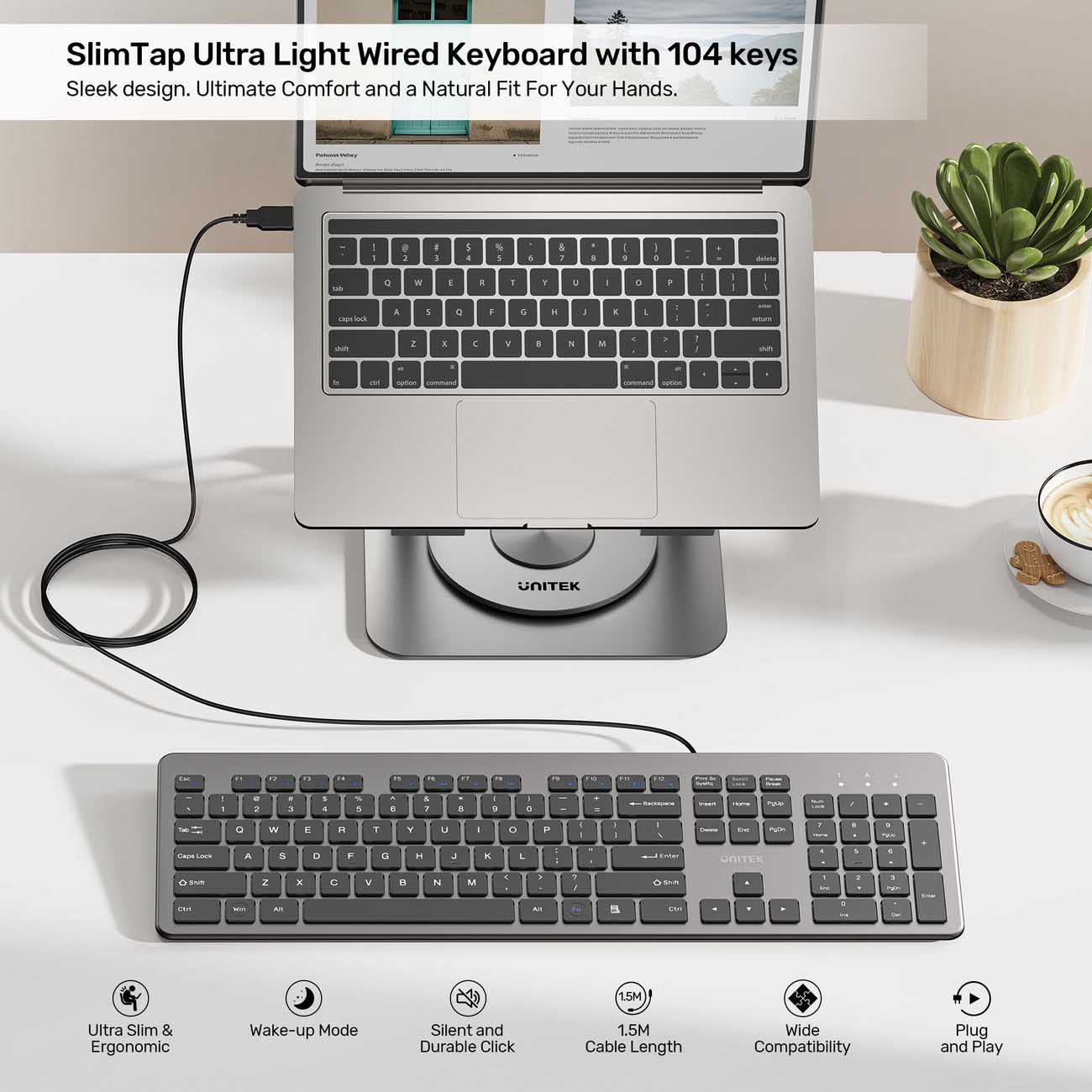Unitek SlimTap Wired Keyboard / Slim Design / Supports Windows & Mac ...