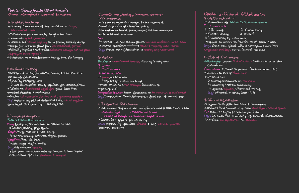POL1102 - Final Exam Short Answer Notes on Globalization & Ideology ...