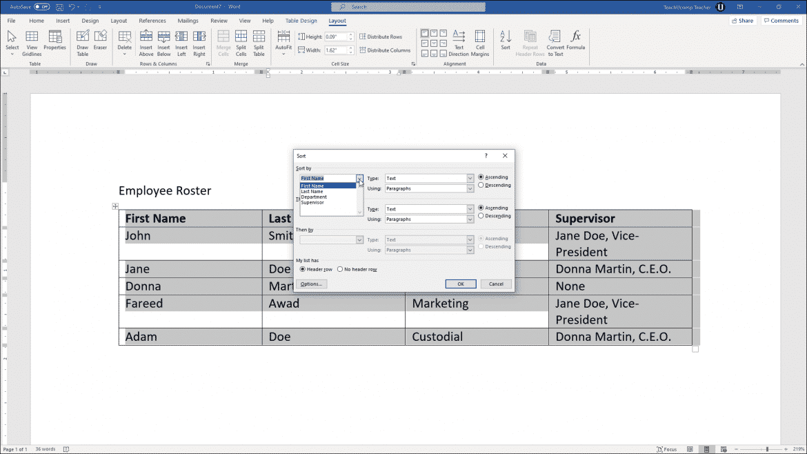 Sort a Table in Word - Instructions and Video Lesson - TeachUcomp, Inc.