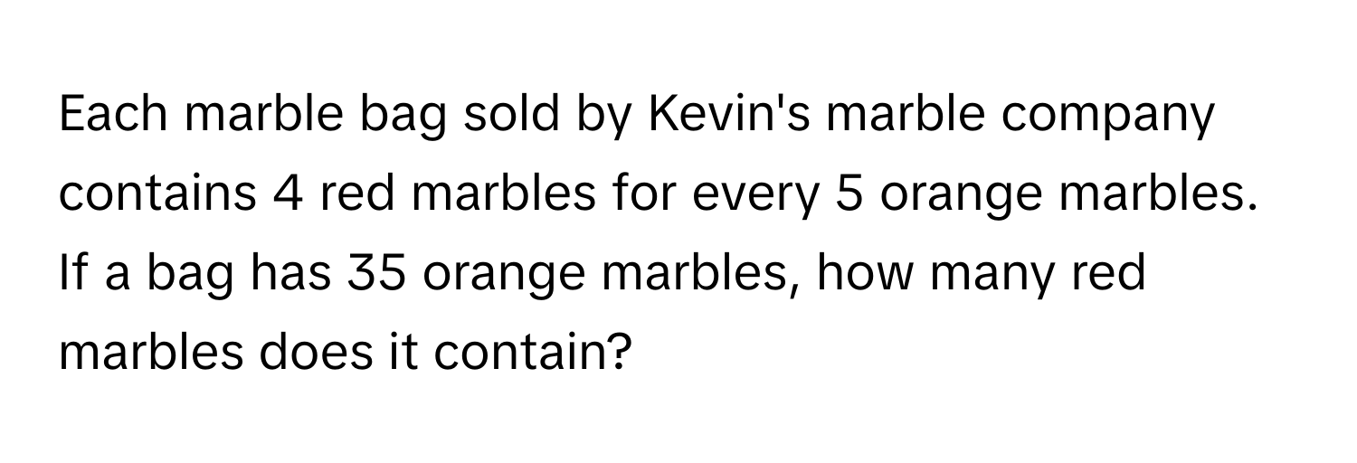 Solved: Each marble bag sold by Kevin's marble company contains 4 red ...