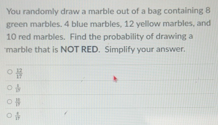 Solved: You randomly draw a marble out of a bag containing 8 green ...