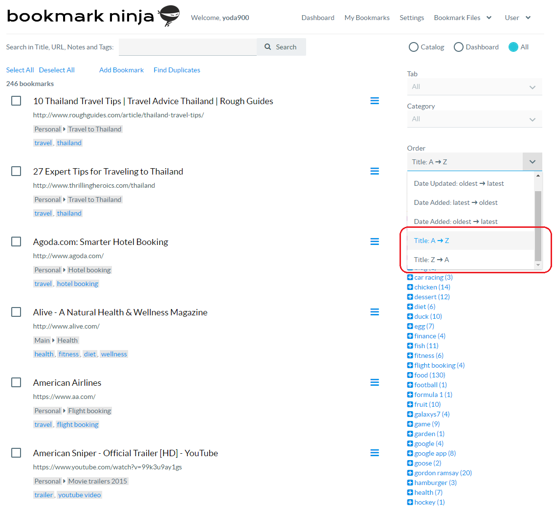 Bookmark Ninja: Improvement: Sorting By Title On The My Bookmarks Page