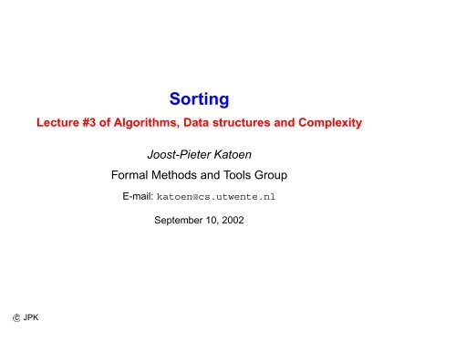 Sorting - Formal Methods and Tools