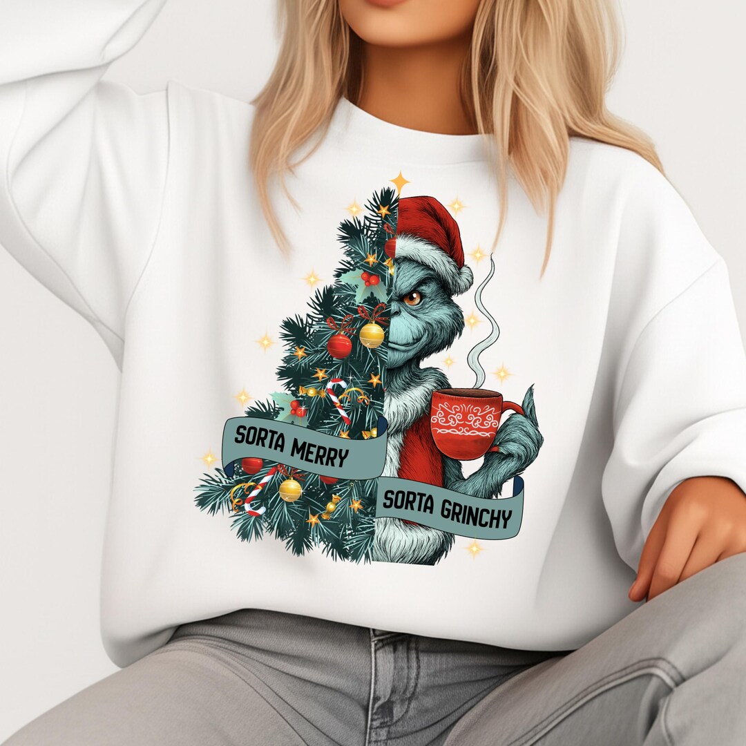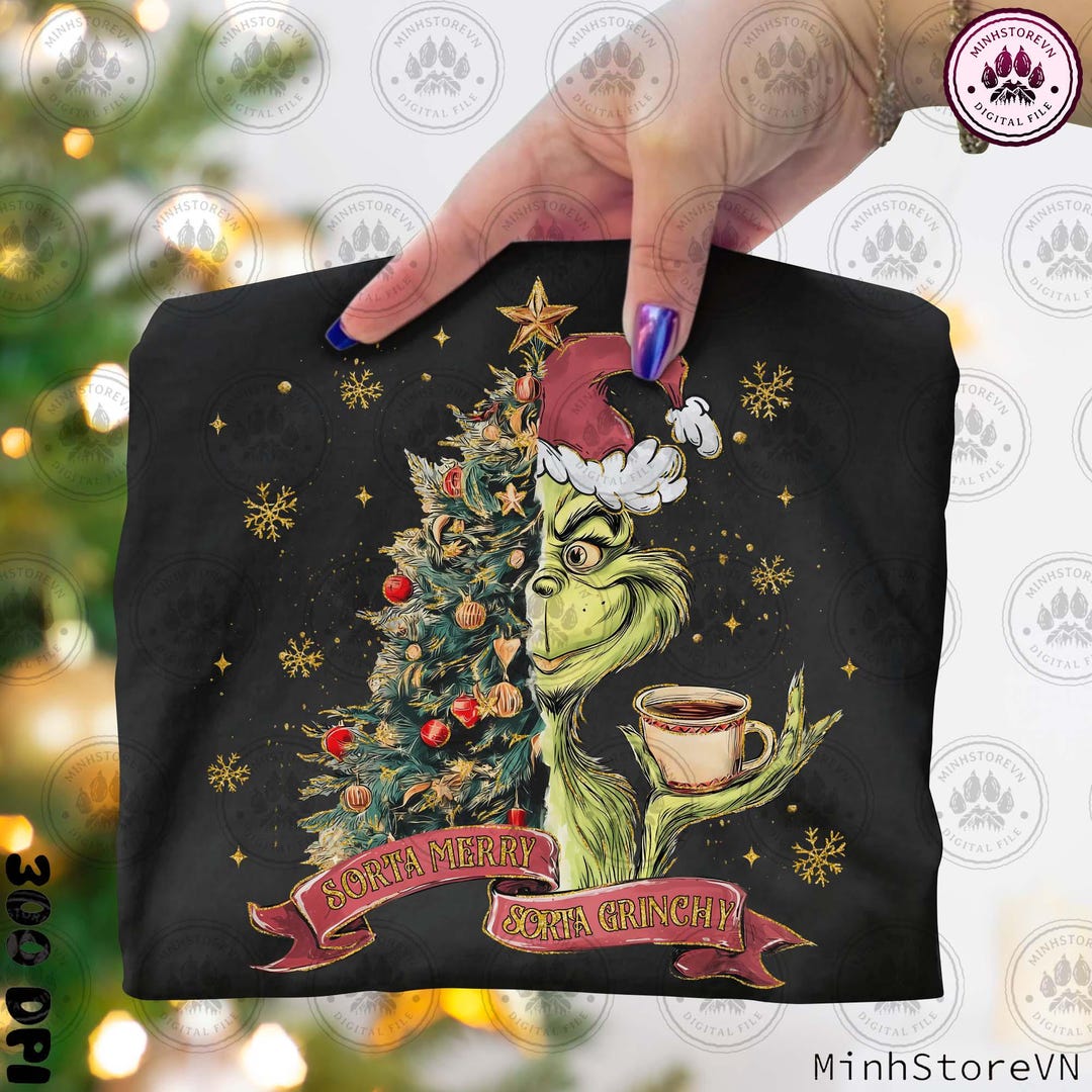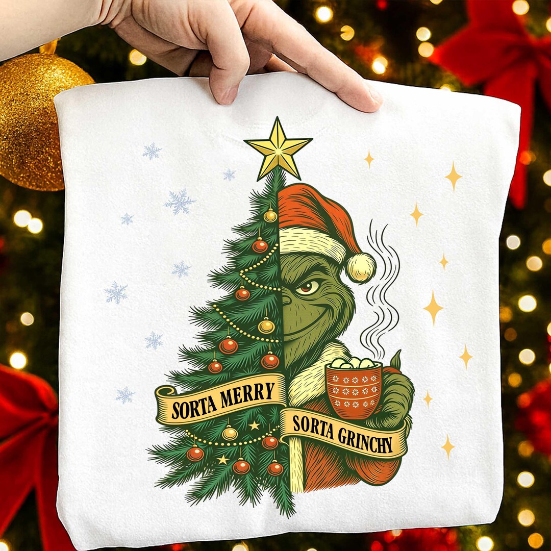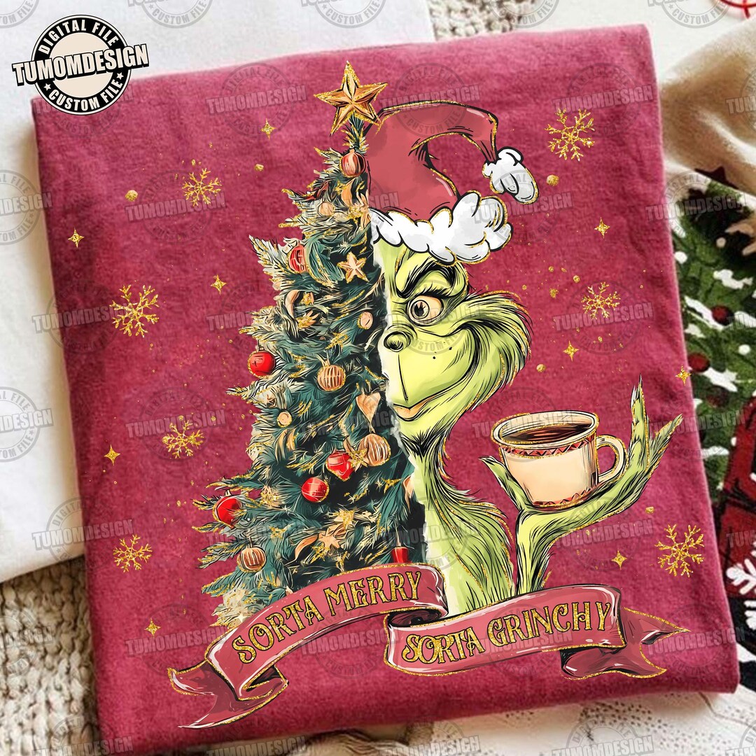 Sorta Merry Sorta Grinchy PNG, Green Mean Guy Christmas Tree Art, Xmas ...