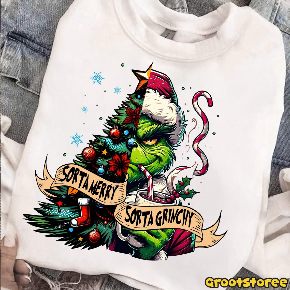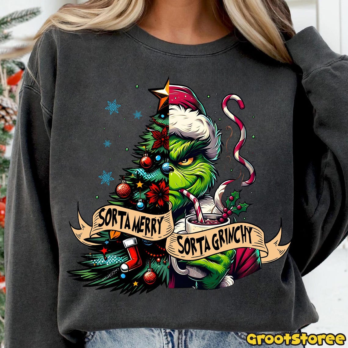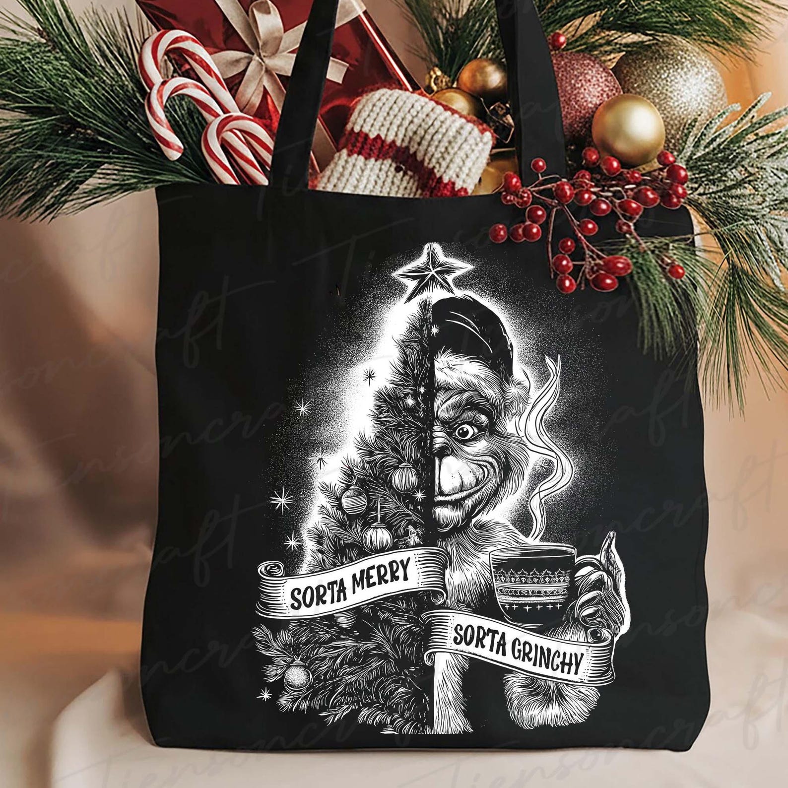 Sorta Merry Sorta Grinchy PNG, Green Mean Guy Christmas Tree Art, Xmas ...