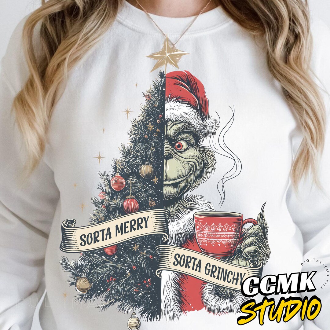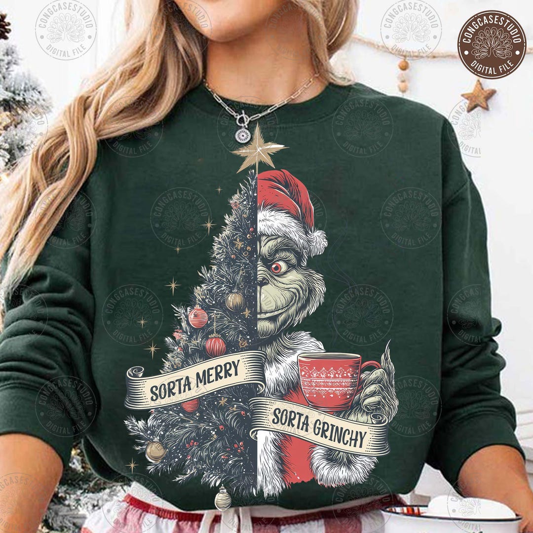 Sorta Merry Sorta Grinc Christmas Png, Retro Green Mean Guy Christmas ...