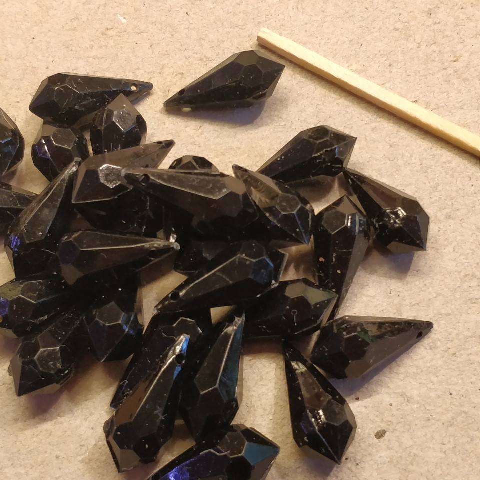 Sorte plastik perler, dråbeformede, smykke materiale.