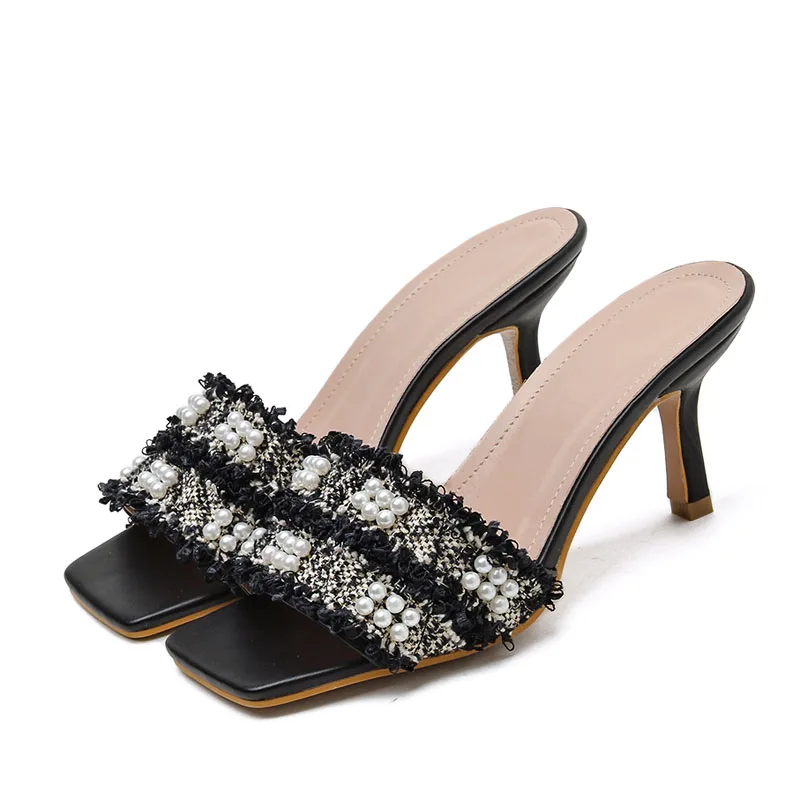 Enkel Sorte Streetwear Perle Sandaler Dame 2020 8 cm Stiletter Peep Toe ...