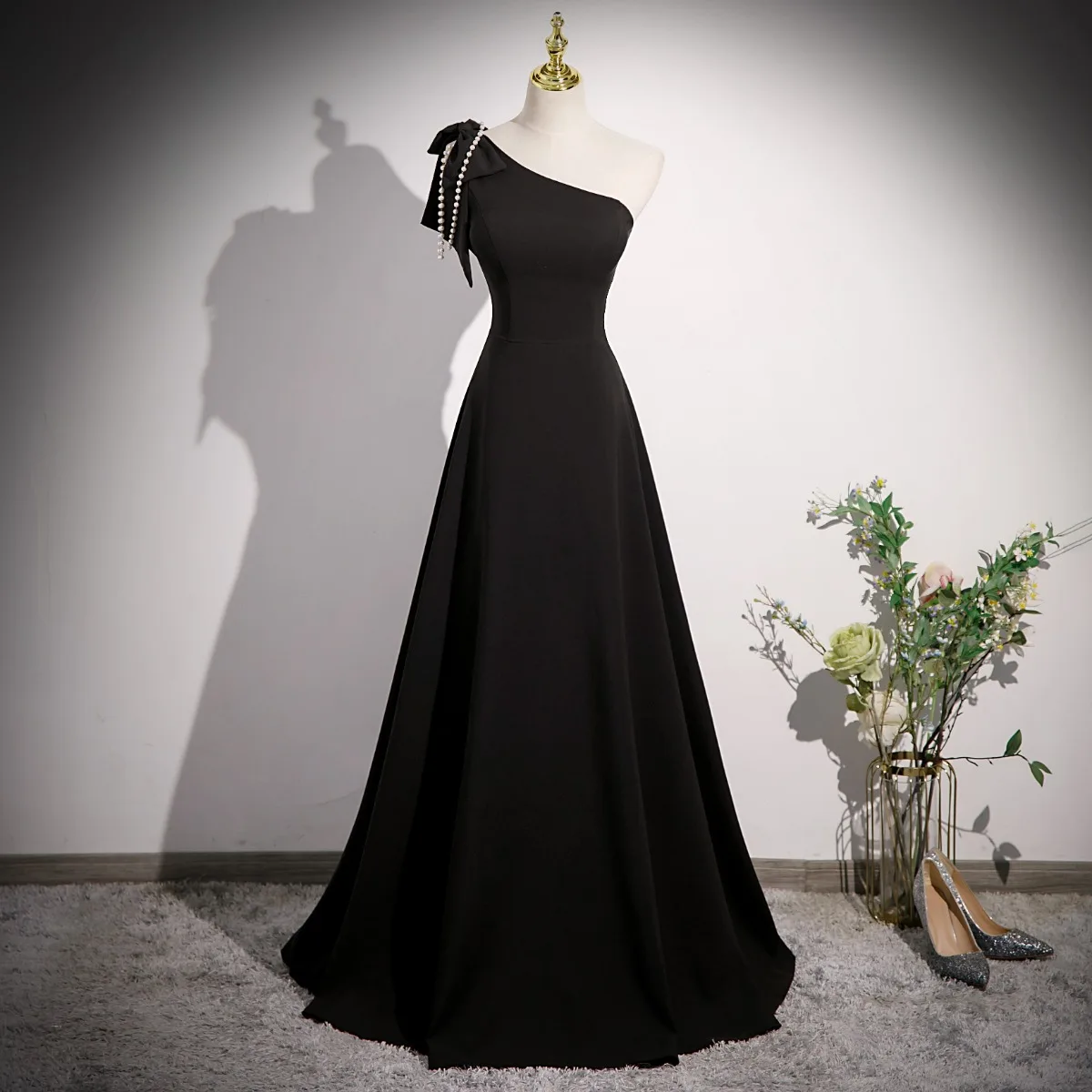 Flotte Sorte Perle Tassel Satin Gallakjoler 2023 Prinsesse Ene Skulder ...