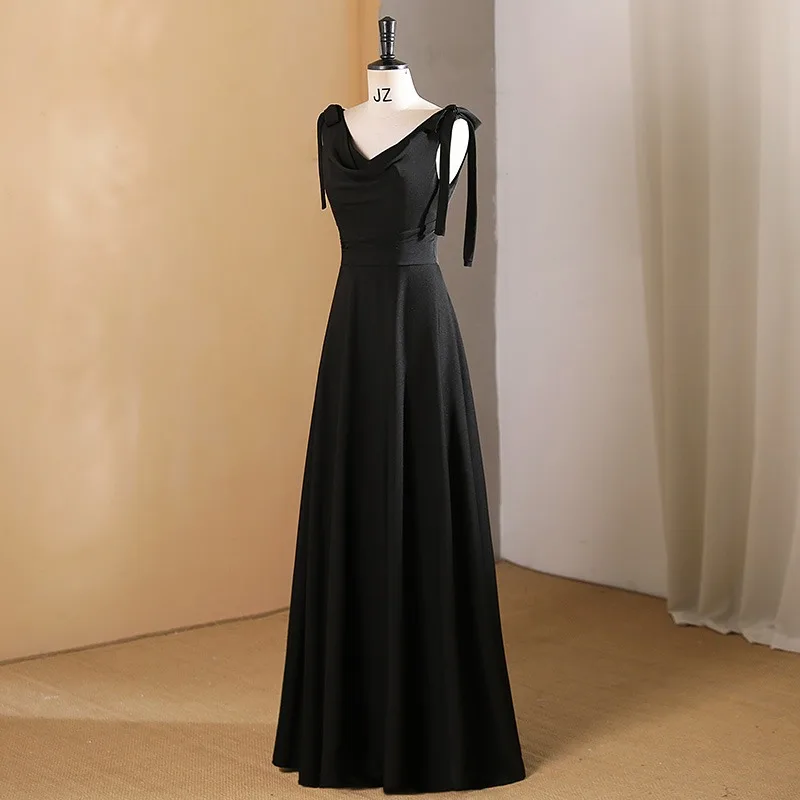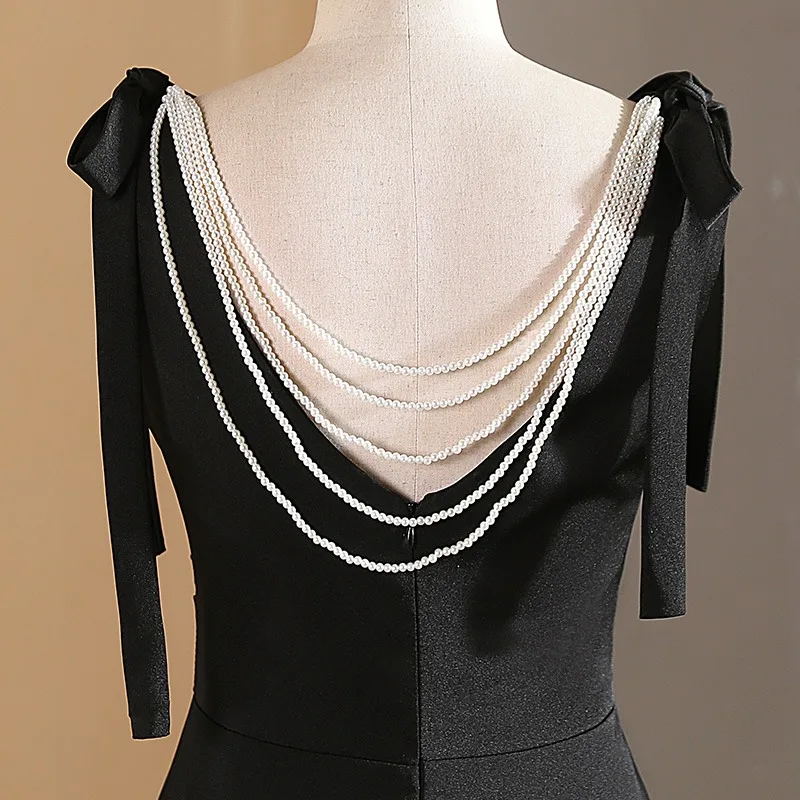 Enkel Sorte Perle Gallakjoler 2024 Prinsesse V-Hals Ærmeløs Halterneck ...