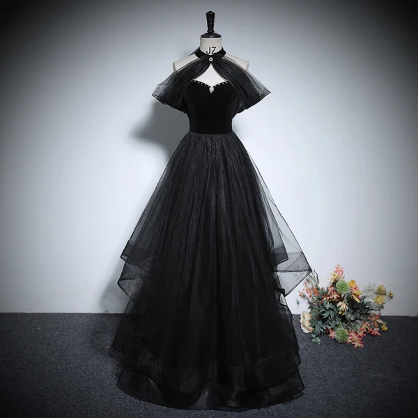 Flotte Sorte Perle Rhinestone Gallakjoler 2024 Prinsesse Høj Hals ...