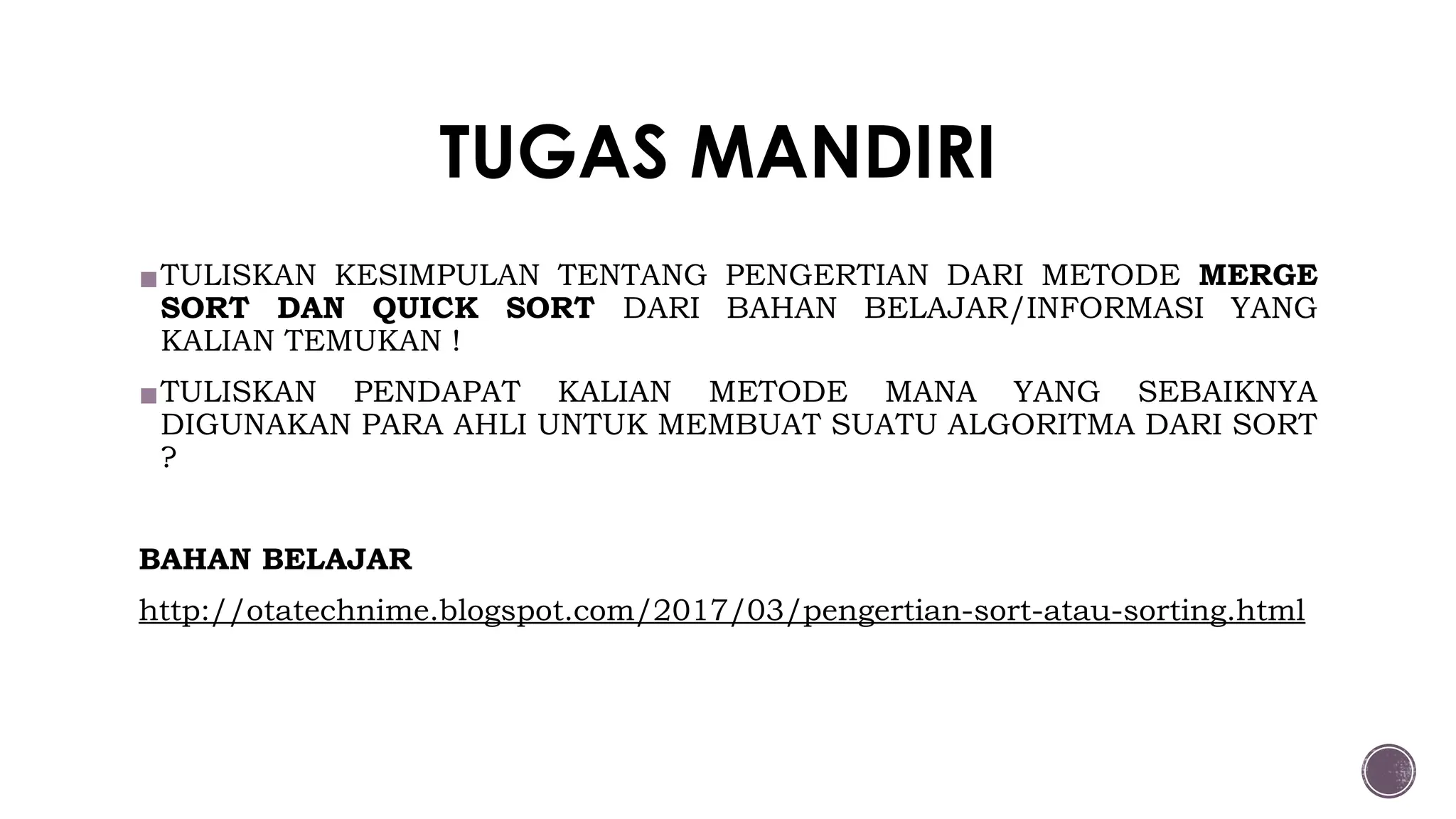 VIDEO PEMBELAJARAN MATERI SORTING | TUGAS INFORMATIKA - YouTube