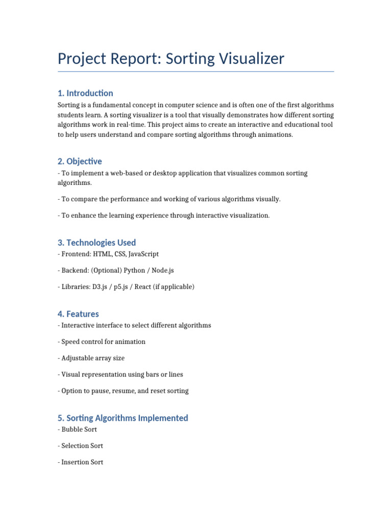 A Project Report Sorting Visualizer | Download Free PDF | Information ...
