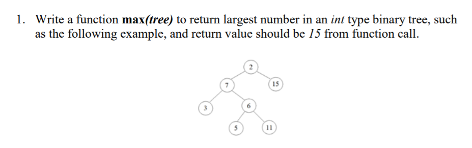 Solved 1. Write a function max(tree) to return largest | Chegg.com