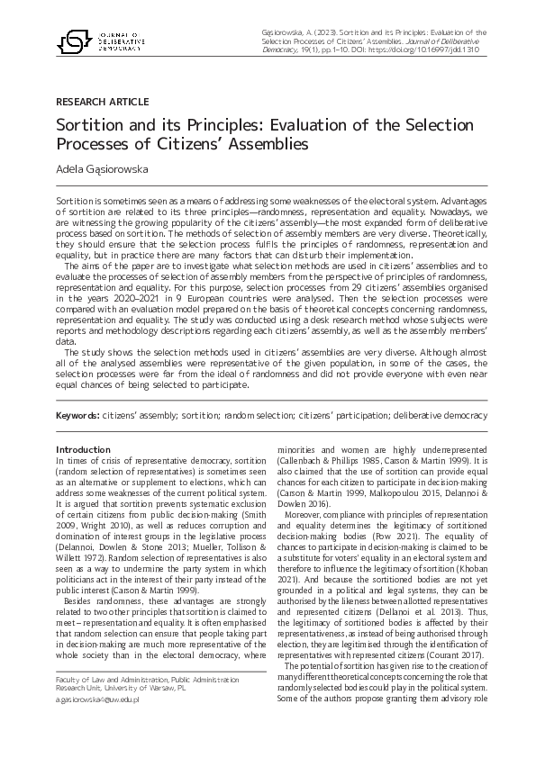 (PDF) Thinking Sortition. Modes of selection, deliberative frameworks ...
