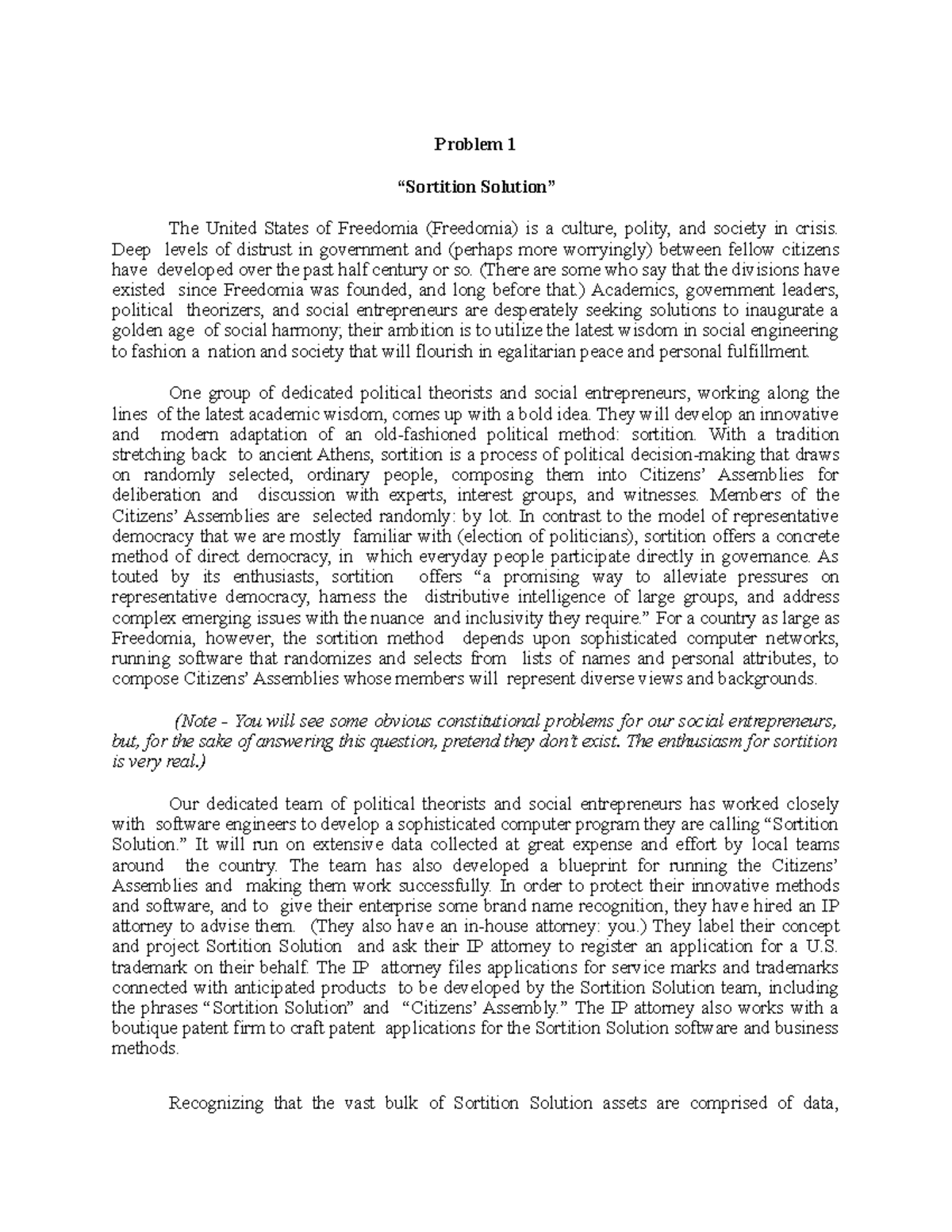 Problem 1 - “Sortition Solution” - Problem 1 “Sortition Solution” The ...