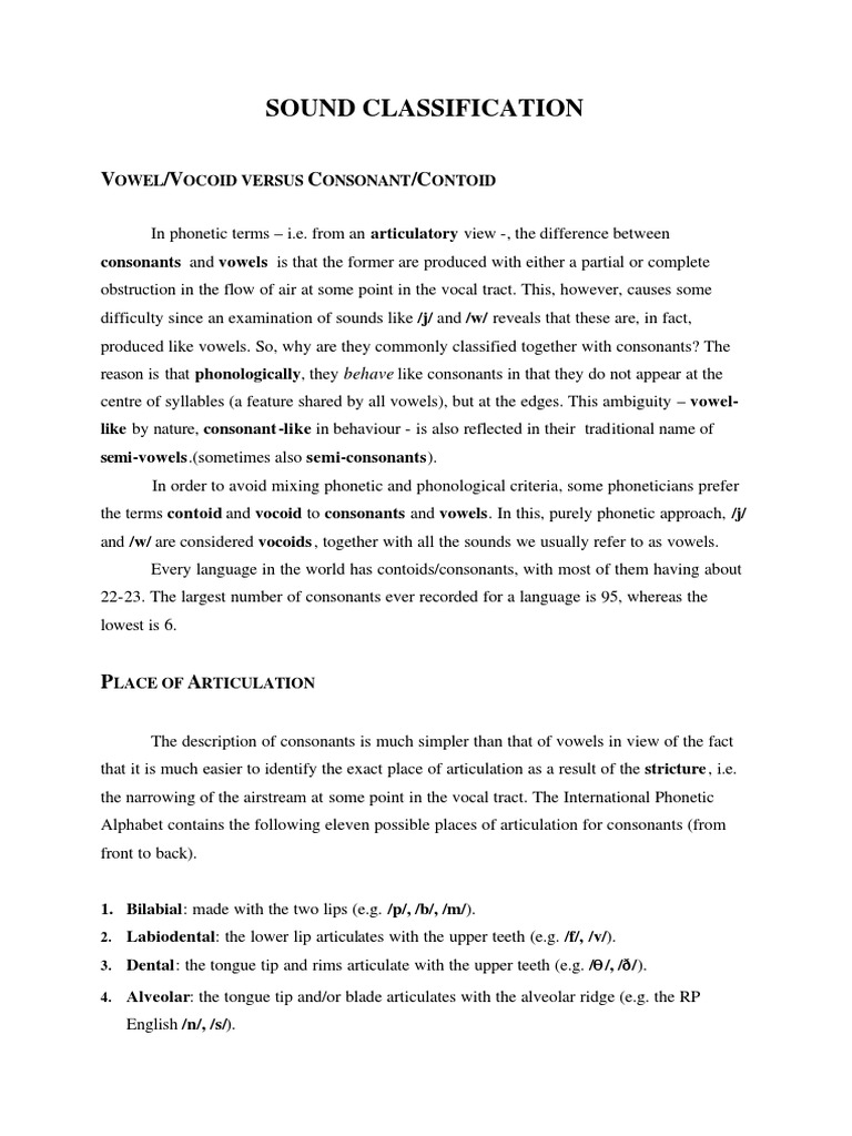 Sound Classification | PDF | Vowel | Phonetics