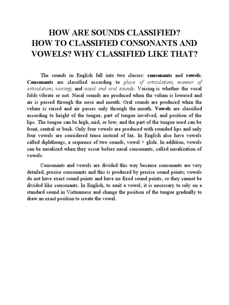 How Are Sounds Classified | PDF | Syllable | Consonant