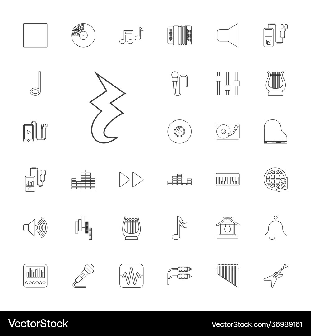 sound icons. Set of 100 line sound icons included music note, treble ...